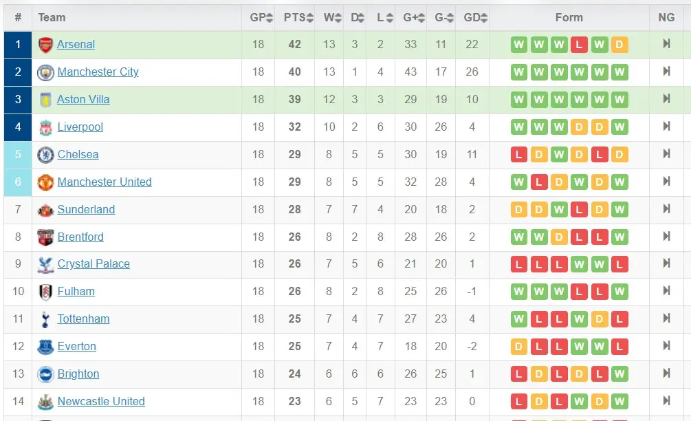 Kết quả đó giúp khoảng cách giữa hai đội được rút ngắn xuống chỉ còn 3 điểm, Arsenal dẫn trước với 42 điểm so với 39 của Villa. Trong bối cảnh Man City đang bám đuổi sát sao, Arsenal là đội chịu sức ép lớn hơn, bởi bất kỳ cú sảy chân nào cũng có thể khiến họ đánh mất vị trí dẫn đầu.