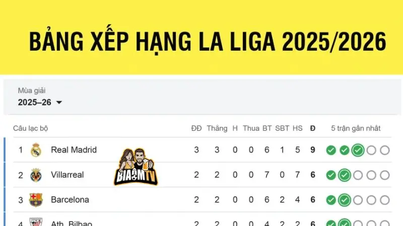 Trong thế giới bóng đá đầy sôi động, La Liga luôn giữ vững vị thế là một trong những giải đấu hấp dẫn nhất hành tinh. Với sự góp mặt của những siêu sao hàng đầu và các đội bóng giàu truyền thống, bảng xếp hạng La Liga trở thành tâm điểm chú ý của hàng triệu người hâm mộ sau mỗi vòng đấu tại Biaomtv.