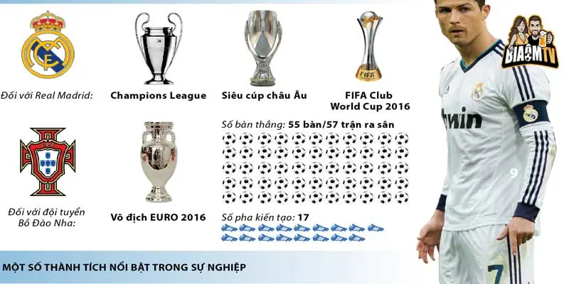 Bên cạnh đó, Ronaldo cũng là thủ lĩnh của đội tuyển quốc gia Bồ Đào Nha, giúp đội bóng giành chức vô địch EURO 2016 và UEFA Nations League.