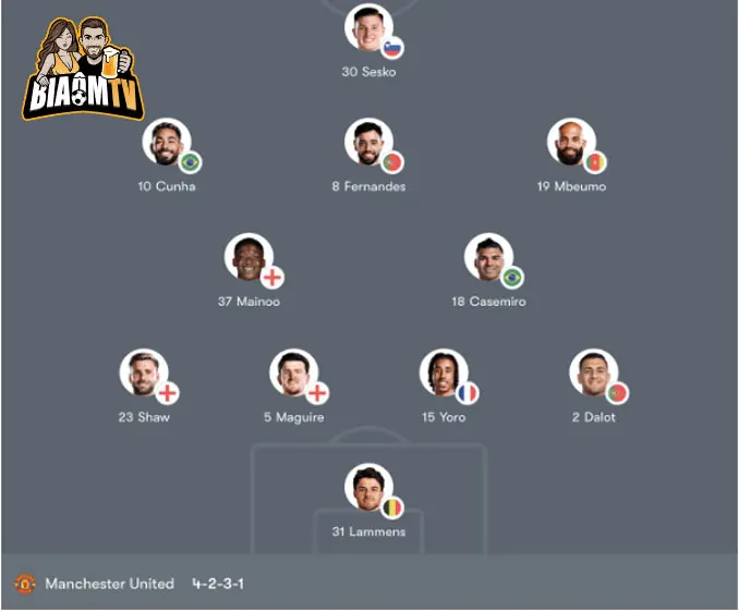 Hai cánh với Amad Diallo và Dorgu mang lại tốc độ và khả năng đột phá. Trong khi đó Bryan Mbeumo được kỳ vọng sẽ tận dụng tốt các khoảng trống phía sau hàng phòng ngự Fulham.