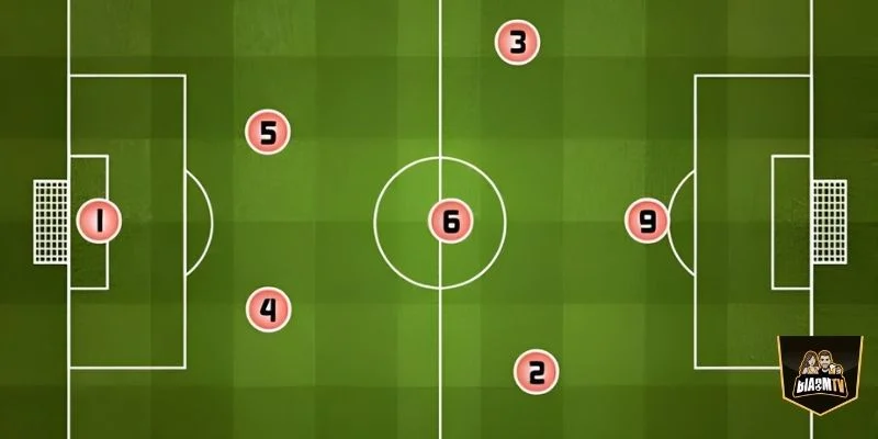 Một tiền đạo phía trên chịu trách nhiệm ghi bàn và tận dụng cơ hội. Sơ đồ này phù hợp với đội bóng có hàng tiền vệ mạnh, khả năng giữ bóng tốt. Tuy nhiên, nếu hai hậu vệ không đủ chắc chắn hoặc thiếu kinh nghiệm, đội bóng rất dễ bị khai thác khoảng trống và nhận những pha phản công nguy hiểm từ đối thủ.