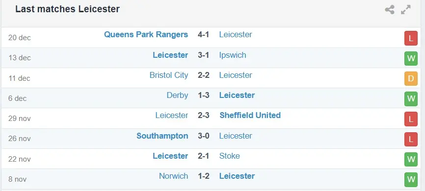 Lợi thế đáng kể cho Leicester nằm ở sân nhà, nơi họ thi đấu rất ổn định với chỉ 2 thất bại trong 10 trận đã qua kể từ đầu mùa. Trái lại, Watford lại thể hiện bộ mặt kém thuyết phục trên sân khách khi mới chỉ có 1 chiến thắng từ đầu mùa 2025/26 đến nay.