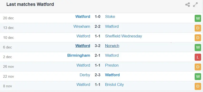 Một số trận đấu gần đây của Watford