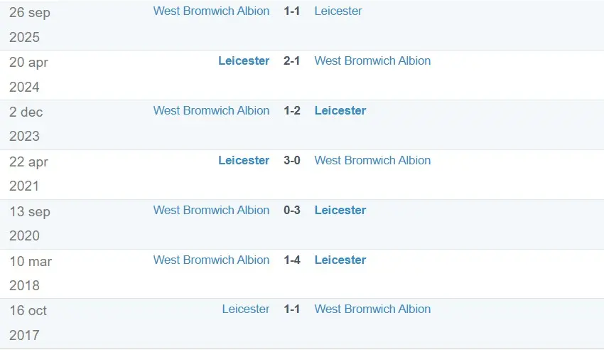 Không chỉ bất ổn về phong độ, West Brom còn chịu bất lợi lớn về thành tích đối đầu. Trong 9 lần chạm trán Leicester gần đây, họ không giành nổi một chiến thắng nào và phải nhận tới 6 thất bại. Với “cái dớp” thường xuyên lép vế trước Bầy cáo, khả năng West Brom tiếp tục đón nhận kết quả không như ý là điều dễ xảy ra.