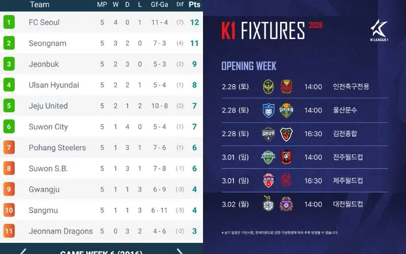Ngoài các cuộc đụng độ chính, các trận cầu kịch tính còn tập trung ở các cặp đấu liên quan đến các đội bóng như lịch thi đấu Ulsan HD, lịch thi đấu Jeonbuk Hyundai Motors, lịch thi đấu FC Seoul, và lịch thi đấu Pohang Steelers. Từng trận đấu mang ý nghĩa quan trọng, tạo ra những cục diện mới trong bảng xếp hạng và làm tăng thêm sức hấp dẫn của giải đấu. Người hâm mộ không chỉ theo dõi sự tranh đấu, mà còn dự đoán chiến thuật của các đội dựa theo lịch thi đấu mới nhất 2026 này.