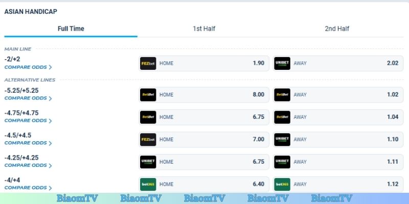 Kèo châu Á full time: 1.90 * -2 * 2.02